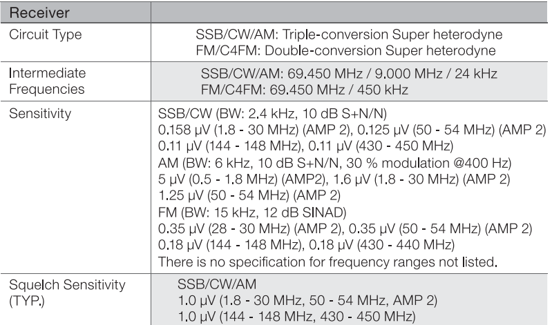 Tipo de modulación: A1A(CW), A3E(AM), J3E(LSB, USB), F7W(C4FM), F3E( FM),