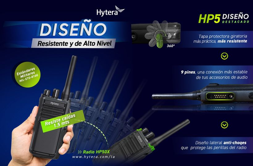 - Hytera HP506 VHF 136-174 MHz 256CH Digital DMR y Analogico 5W Batería 3000mAh Radio Digital Profesional DMR Tier II y Analogico IP67 y MIL-STD-810G, parlante antimagnético Precio con iva incluido