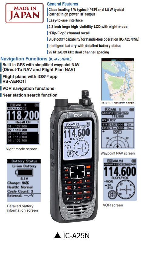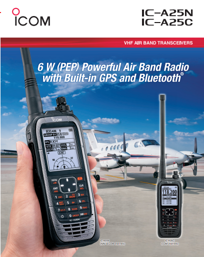 ICOM IC-A25N 300CH Memoria 6W Radio de banda aérea VHF portátil 6W (PEP) con GPS y Bluetooth® integrados Precio con iva incluido