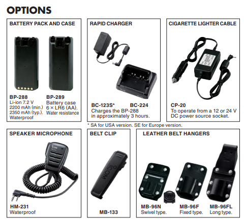 - BC-123SA/SE Adaptador de CA para BC-224*.
