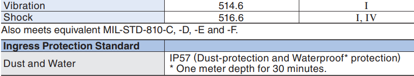 También cumple con el equivalente MIL-STD-810-C, -D -E y -F.