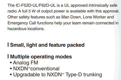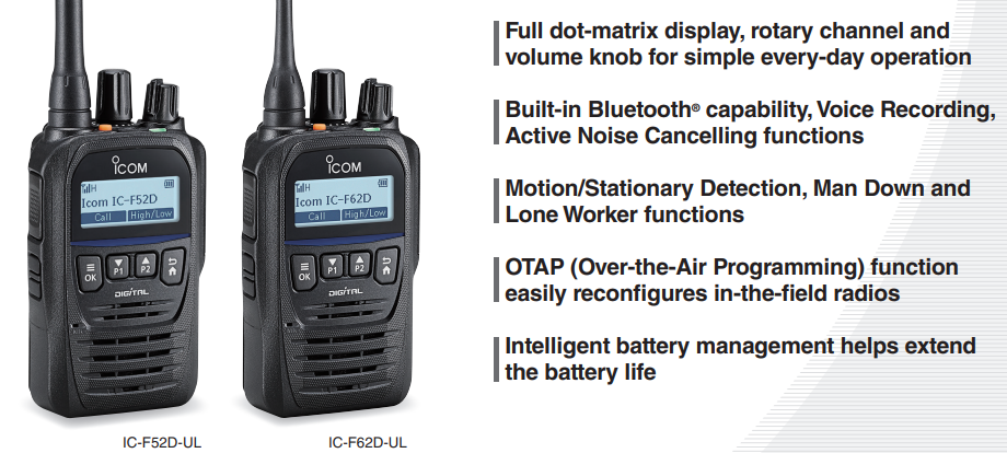 - ICOM IC-F62D 21 UL UHF2 450-512 MHz MHz 512CH Digital IDAS™ Intrínsecamente Seguro 5W Radio Approved UL Classifications Intrinsically safe (A pedido por importación 4-6 semanas) Precio con iva incluid