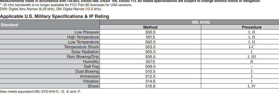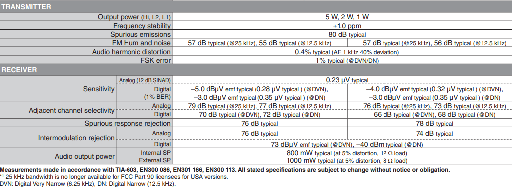Measurements made in accordance with TIA-603, EN300 086, EN301 166, EN300 113. All stated specifications are subject to change without notice or obligation.
