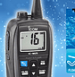 Si se le cae accidentalmente el IC-M25 al agua, flotará, parpadeará y emitirá una alarma sonora. La flotabilidad, la luz intermitente y el sonido reducen el riesgo de pérdida en el mar.