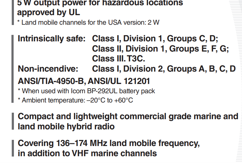 Intrinsically Safe when used with Icom BP-292UL battery pack
