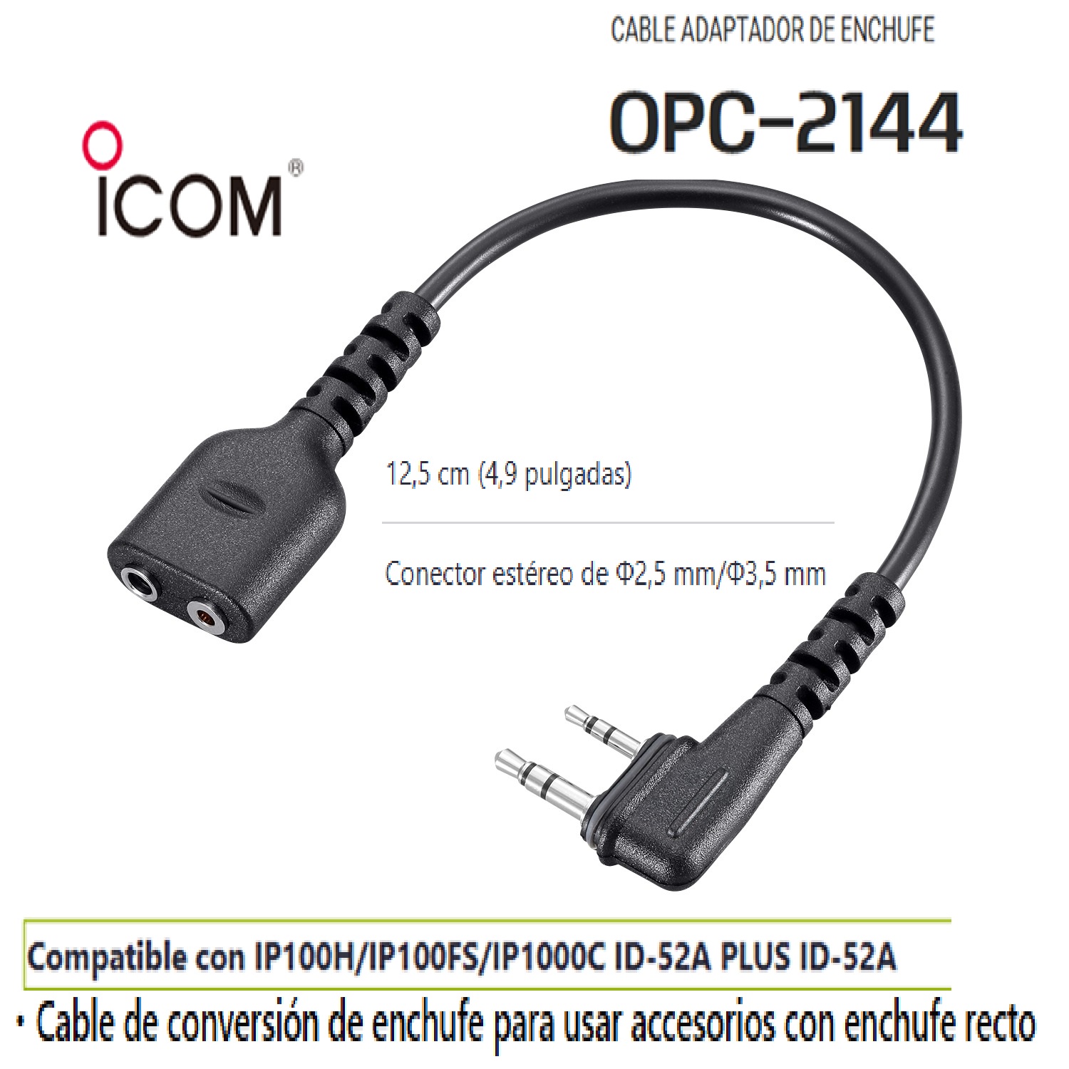 - ICOM OPC-2144 Cable de conversión de enchufe para usar accesorios con enchufe recto portátiles digitales ICOM (Importación de 4-6 semanas) Precio con iva incluido