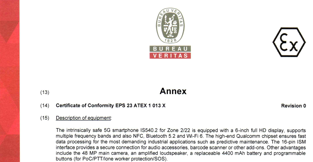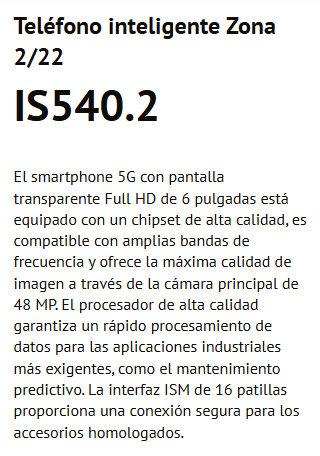 i.safeMOBILE IS540.2 ATEX Zona 2/22 Smartphone Intrínsecamente Seguro 5G con pantalla transparente Android™ 14 (A pedido por importación) Precio con iva incluido