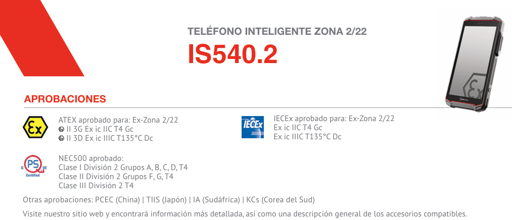 - i.safeMOBILE IS540.2 ATEX Zona 2/22 Smartphone Intrínsecamente Seguro 5G con pantalla transparente Android™ 14 (A pedido por importación) Precio con iva incluido