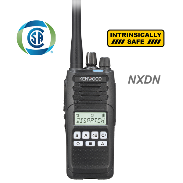Radio portátil Antiexplosivo digital NXDN y analógico. Con pantalla. Rango 450-520MHz, 5 Watts, 260 canales, roaming, encriptación, incluye antena, batería KNB-82LCM de 1900mAh (Intrinsically Safe), cargador de mesa y clip de cinturón.