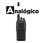 Radio portátil analógico. Sin pantalla. Rango 136-174MHz, 5 Watts, 64 canales, roaming, encriptación, incluye antena, batería 2000 mAh, cargador de mesa y clip de cinturón. Se puede actualizar a digital.