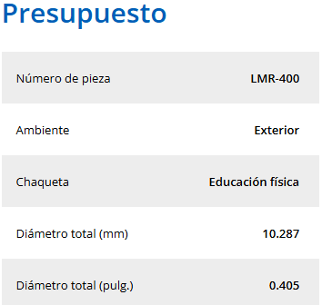 50 metros Times Microwave LMR400 Cable coaxial tipo RG/8 50Ω bajas perdidas Precio con iva incluido