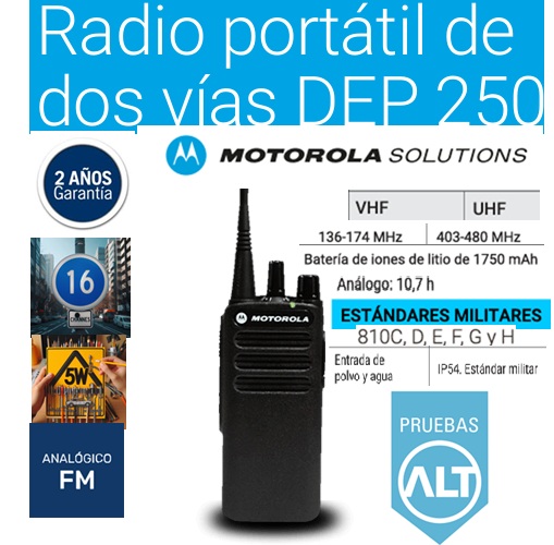 El radio Motorola DEP 250 será su nueva opción. Esta serie puede mejorar la eficiencia de la comunicación y es fácil de usar. Es un práctico radio diseñado y fabricado para profesionales.