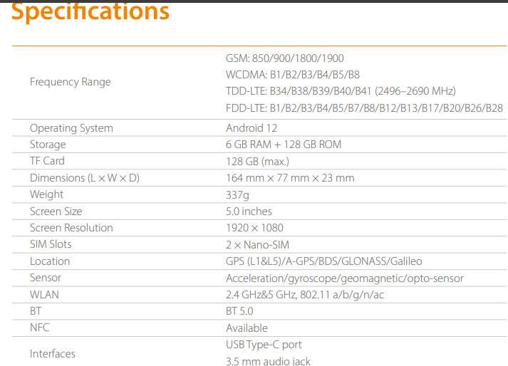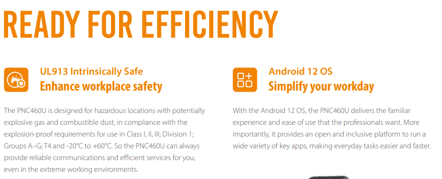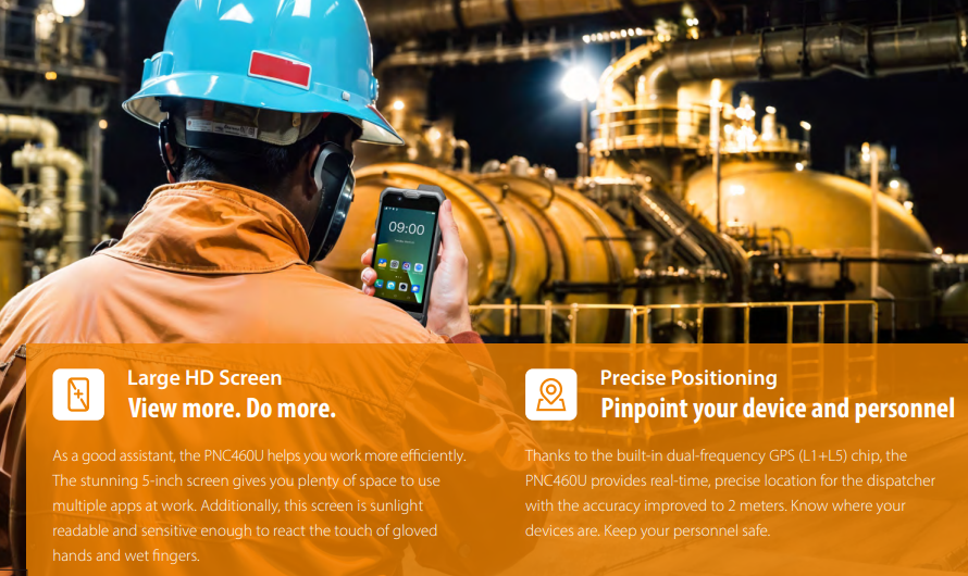 PNC460U Intrinsically Safe Smart Device Explosion-proof, 6GB+128GB, 5"LCD, Telephone, SMS, WIFI (5G/2.5G), NFC, BT, GPS/BD/GLONASS, 4G Device" Euro Standard PS2025 2A