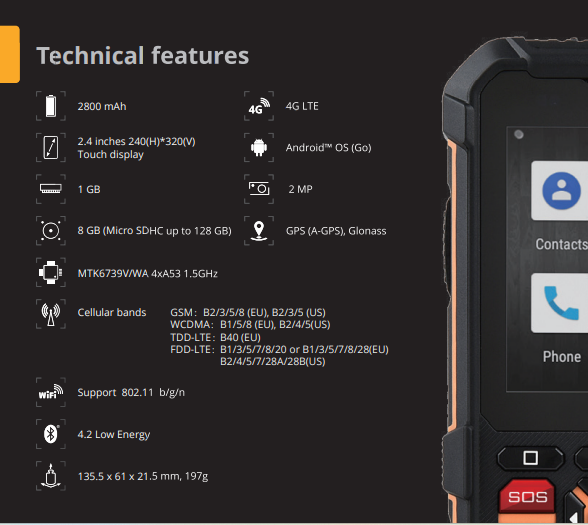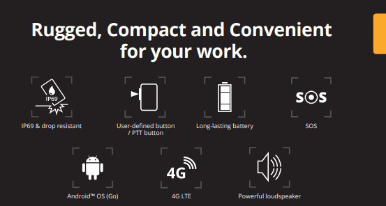 Ruggear RG170 Smartphone Rugerizado y Radio PoC PTT over celular Android GO Bluetooth 4.2 Wifi IP68/IP69k & MIL-STD 810G Micro USB 12 horas de duración Precio con iva incluido