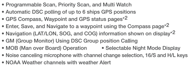 • Sondeo DSC automático de posiciones GPS de hasta 6 barcos