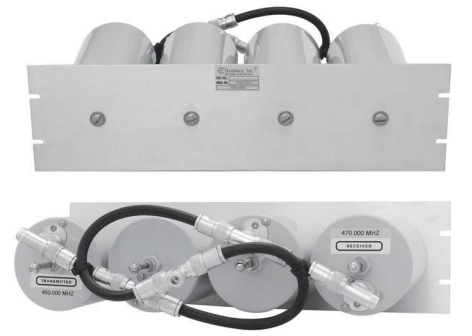 RG-214 Mil-Spec cable is used for all interconnections to ensure long life, and lowest insertion loss with maximum power handling capability. Heavy-duty materials are used in construction of these duplexers, including silver-plated tuners and beryllium copper finger stock contactors, assuring high “Q” performance with no problems due to dissimilar metals. Tuning is simple and remains stable from -30°C to +70°C, thanks to the threaded Invar rod.
