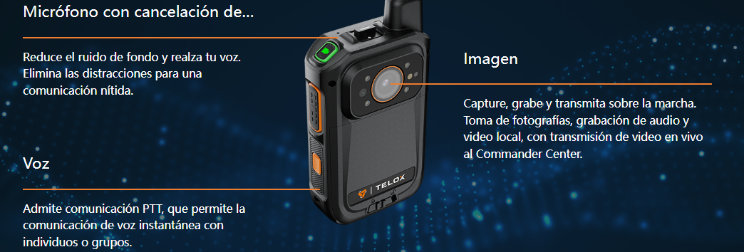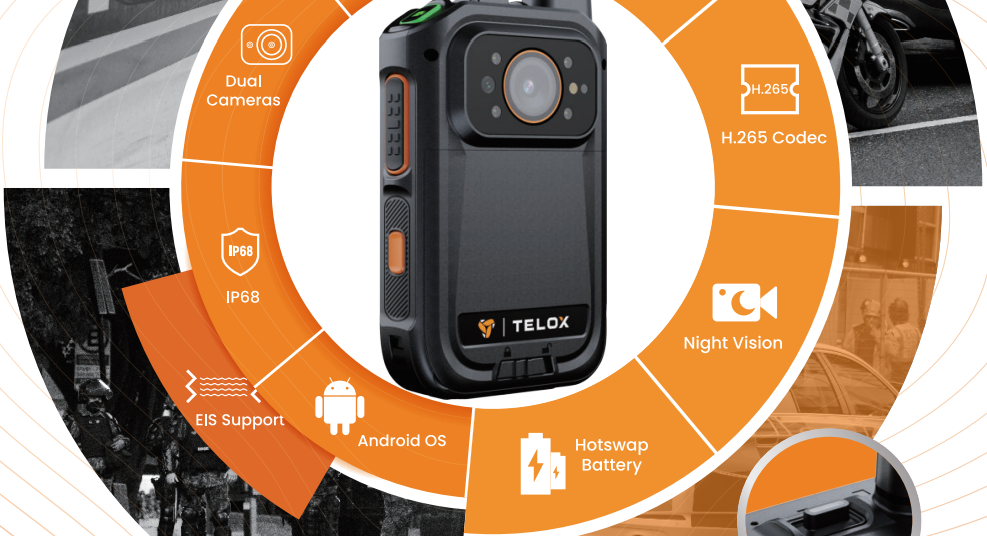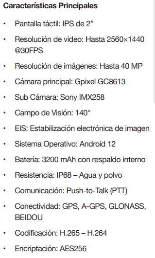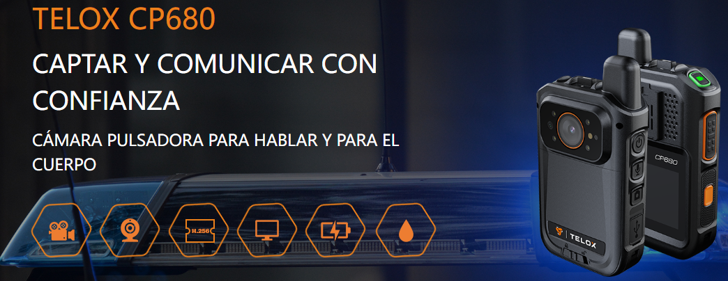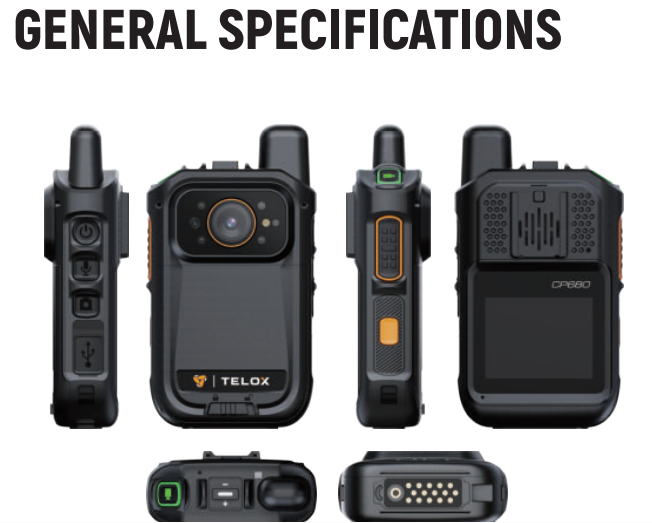 Telox CP680 Bodycam y Radio PoC 64GB 5G 4G Wifi Android 12 IP68 GPS Compresión H.265 Encriptación AES256 180gr Pre/Post grabación NFC BT5.0 USB C CUMPLE Ley 21659 Precio con iva incluido