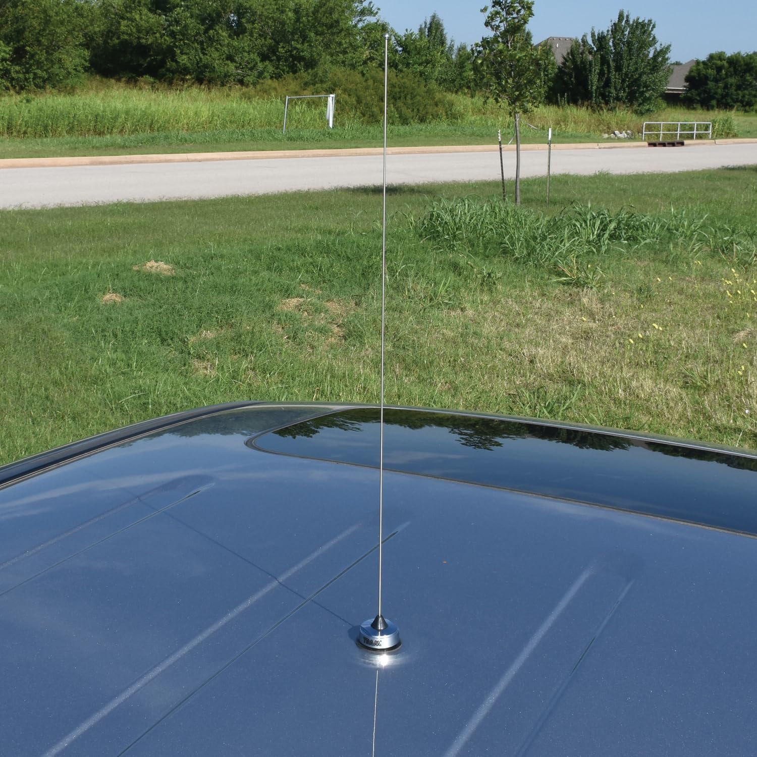 - Construcción duradera: cuenta con una carcasa NMO de latón macizo cromado, látigo flexible de acero inoxidable y un pasador de contacto de latón macizo chapado en oro; mide 18-1/2 pulgadas de alto